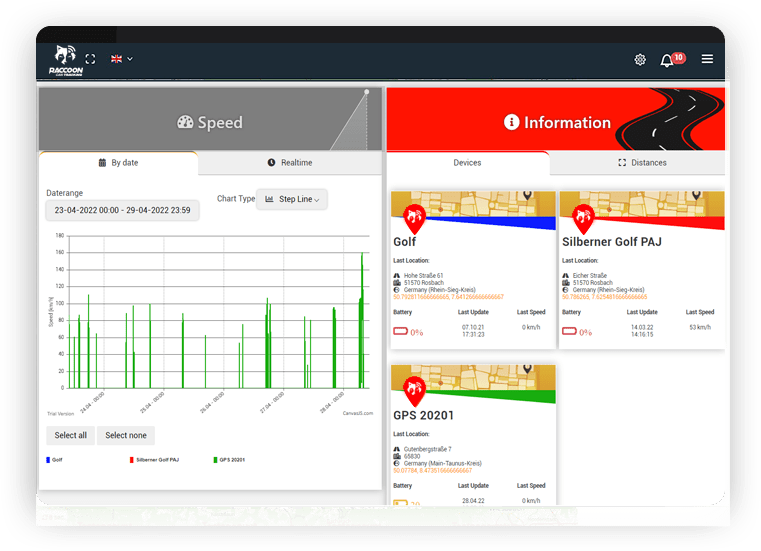Je wilt weten wat er op een specifieke dag gebeurde? Raccoon Tracking slaat de afgelegde routegegevens maximaal 100 dagen op.